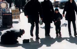 Людмила Улицкая, писательница. Я в нищих толк знаю. У меня есть любимая старушка на Ленинградском рынке, которая ходит с ворохом старых, подобранных на помойке книг. Она просит не деньги, она просит купить книги. И я покупаю — в этом есть какая-то игра. А другая старушка семидесяти лет просит "на сирот" — это неудачная легенда. Вообще, я стараюсь всегда подавать. Труд или любое подобие труда мне симпатично, поэтому, например, люблю подавать музыкантам.