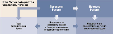 Глава Чечни будет назначаться указом президента. Ему подчиняется правительство республики,— оно будет сформировано из структур нынешней временной администрации и аппарата полпреда федерального правительства. Причем в отраслевые управления чеченского правительства предполагается делегировать чиновников из Москвы. Последнее означает, что руководитель республики не получит права самостоятельно формировать правительство.