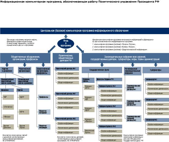 Для обеспечения задач, стоящих перед Политическим управлением Президента РФ по контролю и управлению политическими процессами в Российской Федерации, создается Центральная компьютерная сеть и Центральная (базовая) компьютерная программа информационного обеспечения Политического управления Президента РФ.