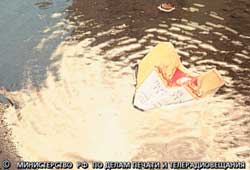 Полный дяденька лет тридцати предлагает мальчику лет восьми сводить его в кино, дать конфетку, покатать на машине. Но мальчик бьет дядю ногой в пах и спрашивает: "Я правильно все сделал, папа?" Папа с перекошенным лицом показывает сыну большой палец. Подпись: "Министерство по делам печати и телерадиовещания РФ".