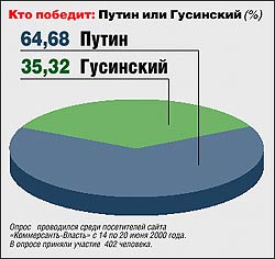— У Гусинского просто хотели отнять НТВ. Отнять хотел Березовский, потому что у Березовского у самого отнимают ОРТ в пользу РТР. Поэтому теперь ОРТ будет работать на Путина, как и положено государственному каналу.