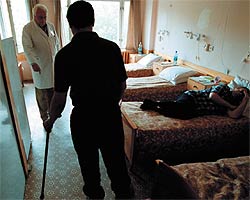 — Все они выписываются из центра нормальными людьми. Просто плохо говорят и ходят,— продолжает Виктор Маркович после моей экскурсии по врачам и палатам.— Был парень, который даже поступил в институт. У многих здесь завязываются романы с пациентками. И вся их бурная личная жизнь развивается на наших глазах. Один, с первой чеченской войны, уже женился и даже стал отцом двоих детей. Сейчас он водит машину, работает. А после ранения его в течение года не могли найти родственники — он не помнил, как его зовут и откуда он, не мог назвать номер части.