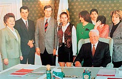 Поскольку Руслан Тамаев отказался рассказать об этих счетах, поясним, о чем идет речь. Два года назад швейцарские правоохранительные органы нашли в луганском филиале Banco del Gottardo счета Бориса Ельцина, его жены и дочерей, а также бывшего управделами президента Павла Бородина. Согласно версии следствия, деньги на эти счета переводили руководители компаний "Мабетекс" и "Мерката" Беджет Паколли и Виктор Столповских в благодарность за выгодный подряд на реставрацию Кремля. Например, Бородин вместе с Паколли владел счетом на несколько миллионов долларов. Средства с него снимались тремя способами: чеками, по поручениям или с помощью кредитных карт. Однако на финансовых документах нет подписей ни Бородина, ни кого-то из семьи Ельциных, а значит доказать факты взяток практически невозможно.