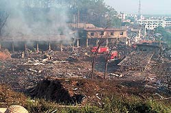 | Взрыв полностью разрушил фабрику и повредил окрестные дома |