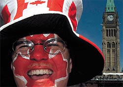 | День Канады. По числу лиц, разрисованных в цвета канадского флага, он вполне может конкурировать с хоккейным матчем |