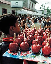 | Такие яблоки со свечками можно увидеть только раз в году на панамском карнавале |