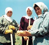 На обратном пути на одном из приусадебных участков мы заметили копошащихся в земле женщин. Подошли поближе. Женщины выбирали из сухой земли картошку.