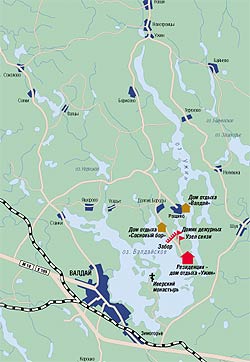 Журналисты по-разному называют это место: "Валдай", "сталинская дача", "Долгие Бороды". И все ошибаются. На самом деле резиденция Владимира Путина, расположенная в 20 км от города Валдай и неподалеку от деревни Долгие Бороды, называется "Ужин". И Сталин здесь не бывал: дачу построили в 1980 году.