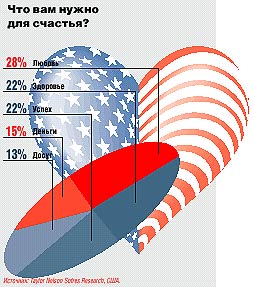 Это открытие сделали специалисты Taylor Nelson Sofres Research, выясняя, какой фактор взрослые жители США учитывают в первую очередь, когда определяют свое качество жизни.Оказалось, что счастье американцы измеряют отнюдь не числом ванных в доме и даже успех стоит у них не на первом месте.