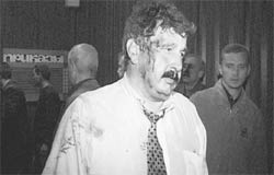 — Почему нас заперли в этом кабинете? Неправильно запирать людей! — хохочет Антон Баков, вспоминая.— Начали было ломать, но тут одна журналистка говорит: "Погодите, у меня три минуты до прямого эфира!" Пришлось подождать. Когда опять начали ломать, нас стали травить из кислотных огнетушителей. Это они зря, мой пиджак почти полностью разъело. Тут, конечно, мои охранники совсем озверели.