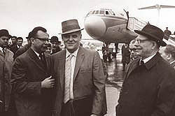 | 4 июня 1969 года. Секретарь ЦК КПСС Дмитрий Устинов встречает в аэропорту Внуково лидера американских красных, прибывшего на совещание коммунистических и рабочих партий |