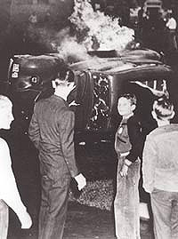 | 1940 год. Коммунисты раздавали листовки в маленьком городке в штате Иллинойс. Благодарные жители подожгли машину одного из них |