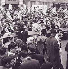 | 30-е годы. Коммунисты в Детройте протестуют против судебного решения по делу Томаса Муни, приговоренного к пожизненному заключению |