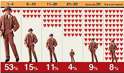 Любвеобильность американцев решили определить сотрудники журнала для влюбленных Adam & Eve, которые заказали соответствующий опрос общественного мнения уважаемой американской компании Yankelovich Partners. Вопрос, который задавался взрослым американцам, был прост: надо было вспомнить количество своих сексуальных партнеров. Тут и выяснилось, что у абсолютного большинства опрошенных было не больше пяти романов. Впрочем, 8% из них затруднились вспомнить точное количество своих партнеров.