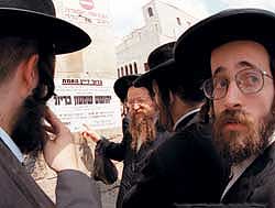 26 апреля, когда израильтяне отмечали 53-ю годовщину создания своего государства, на нескольких домах в иерусалимском квартале Меа-Шеарим вновь, как и в прежние годы, появились траурные черные флаги. Их цвет гармонировал с одеждой и обликом обитателей квартала — мрачных чернобородых мужчин в черных широкополых шляпах. В Меа-Шеариме живут в основном религиозные ортодоксы, или, как их называют в Израиле, харедим — буквально: люди, боящиеся Всевышнего.
