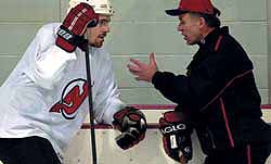 | Вячеслав Фетисов (справа) — трехкратный обладатель Кубка Стэнли. Дважды он получал его как игрок "Детройт ред уингс" и один раз — как тренер "Нью-Джерси девилс" |