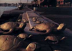 | Золотые черепахи от итальянской "Крекинг-групп" усеяли всю биеннале подобно полчищам саранчи |