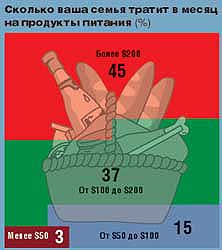 По данным германской исследовательской компании Roland Berger, средний житель России тратит на покупку еды до $70 в месяц. Судя по результатам опроса интернет-аудитории, проведенного сайтом "Росбизнесконсалтинг", средний пользователь сети уделяет поддержанию своей бренной плоти несколько более пристальное внимание.