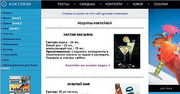 Если же вы очень любите своих гостей и изо всех сил хотите им угодить, отправляйтесь на сайт "Рецепты коктейлей" (www.toast.ru/cocktail). Здесь вы найдете 431 рецепт напитков на основе водки, виски, джина, рома, текилы, шампанского, кальвадоса и Martini Bitter, а также 15 видов глинтвейна и 12 — грога.