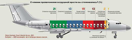 Вы были свидетелем "воздушной ярости"? На этот вопрос Business Travel Lifestyle Survey в 2001 году утвердительно ответили 40% опрошенных. В двух из 100 случаев "воздушная ярость" приводила к отмене авиарейсов.