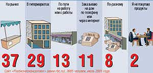 Опрос, проведенный сайтом "Росбизнесконсалтинг", показал: сеть еще не стала местом решения бытовых проблем для хоть сколько-нибудь значительного числа пользователей. В частности, большинство абонентов предпочитают покупать еду на рынке или в магазине, но не в интернет-супермаркетах.