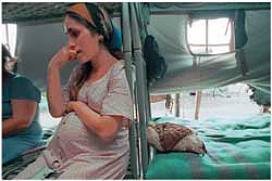 — Здесь беременные и вдовы,— осторожно вставляет комендант одного из палаточных городков симпатичная светловолосая чеченка Зара.— Им надо помочь.