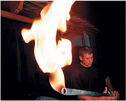 | С электричеством в Грозном проблемы, зато с газом все в порядке. Жители обрезают газовые трубы, оборачивают жестью, чтобы факелы не гасли от ветра, и так освещают дворы |