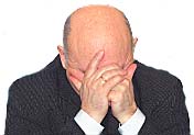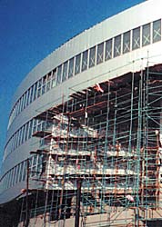 | Оставшись без пригляда московской мэрии, зодчие пытаются играть в собственные игры. Председатель московского Союза архитекторов перед зданием кегельбана, построенным бюро "Рождественка" |