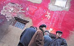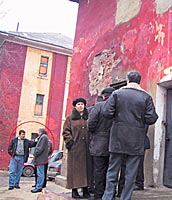 | Многие вкладчики "Интерлайна" не уверены в надежности этой фирмы. Их сомнения всегда готовы развеять несколько человек (в кружке), которые околачиваются у ее крыльца |
