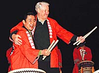 | 18 апреля 1998 года, Кавана, Япония. Президент России Борис Ельцин и премьер-министр Японии Рютаро Хасимото бьют в барабаны, отмечая успех саммита. Несмотря на показное братание двух лидеров, им так и не удалось продвинуться в решении территориального спора. Ясной позиции у Москвы не было — она не видела возможности отдать острова, но говорить японцам "нет" не хотела. Москва отвергла и предложенный Токио компромисс — признать японский виртуальный суверенитет на Южных Курилах, а взамен на неопределенный период оставить на них систему российского административного управления |