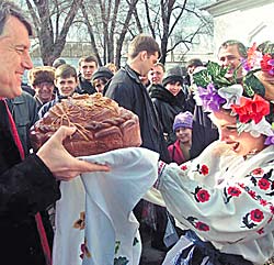 | Лидер блока "Наша Украина", экс-премьер Украины Виктор Ющенко, уже видит себя национальным лидером. На нынешних выборах его блок получил больше всего голосов |