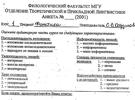 И все же, несмотря на такое равенство, в отношениях студентов и преподавателей произошли существенные сдвиги — студенты получили больше прав. Например, на филологическом факультете МГУ они регулярно оценивают своих преподавателей по целому ряду параметров: информативность и увлекательность лекций, последовательность и сложность изложения и т. п. (см. интервью). Эта практика, заимствованная из западных университетов, уменьшает социальную дистанцию между преподавателями и студентами — первые уже не обладают безграничным авторитетом, а последние не остаются безропотными и пассивными.