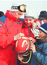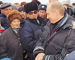 | Играя роль большого брата, Путин занимался дзюдо и не допускал фамильярностей с женщинами. Выбрав роль отца народа, он прочно встал на горные лыжи и без стеснения проявляет отеческую ласку к девочкам |