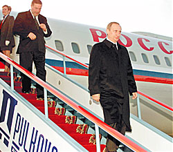 "Впереди еще много работы, на самом деле," — говорит усталый и простуженный Путин в аэропорту, вернувшись из командировки.