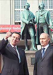 Когда речь идет о Путине, таким узлом является НАТО. Во вновь создаваемом коллективе с рабочим названием "К двадцатке" он претендует на полное равноправие при рассмотрении важнейших вопросов. И, в сущности, даже это его не полностью удовлетворяет. Но российский путь на Запад проходит не только через НАТО. Он проходит через множество станций, где, как и в Веймаре, поезду дают возможность продолжать путь.