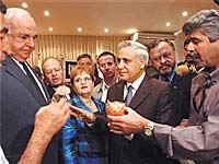 | На приеме у Моше Кацава (второй справа) Гельмуту Колю преподнесли перец, но не сумели объяснить, как им пользоваться |
