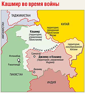 Пакистан рассматривает задачу объединения с индийской частью Кашмира как "завершение незаконченного процесса отделения от Индии". "В Кашмире идет освободительная борьба, в последствиях которой нельзя винить Пакистан",— заявил на прошлой неделе Первез Мушарраф, чем вызвал ярость индийских властей. Дели обвиняет Исламабад в тайной поддержке оружием и деньгами "кашмирских борцов за свободу" и в предоставлении им своей территории для подрывной деятельности против Индии. Пакистан же настаивает на том, что речь идет лишь о моральной и дипломатической поддержке.