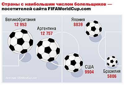Официальный сайт чемпионата мира по футболу FIFAWorldCup.com опубликовал свой рейтинг активности футбольных болельщиков. Активность определялась просто — посетителей сайта попросили ответить, за какую сборную они болеют.
