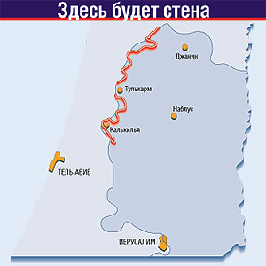 Согласно проекту, стена длиной 350 км должна оградить не весь Западный берег реки Иордан — это было бы слишком дорого,— а лишь самую опасную его часть — северную, где находятся города Дженин, Тулькарм, Калькилья, Наблус. Именно там расположена своеобразная кузница кадров палестинских камикадзе.