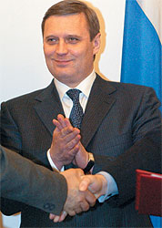 Такая ситуация ни Костина, ни его покровителя Касьянова явно не устраивает. Ясно, что, несмотря на большие коммерческие успехи ВЭБа в последние годы, ему нужна официальная и с незапятнанной кредитной репутацией крыша. Весь 2001 год Костин предлагал использовать в этом качестве мелкий государственный Росэксимбанк. И вдруг поворот: Костин замахнулся на гиганта российского финансового рынка. Когда у него спросили, не Михаил ли Касьянов вдохновил его на столь смелое заявление, банкир ответил, что ни на заседании правительства, ни лично с премьером вопрос об объединении ВЭБа с ВТБ не обсуждал, а всего лишь высказал личное мнение. Никто ему, конечно, не поверил.