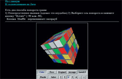 | На сайте "Головоломка" вы можете попробовать сами собрать кубик Рубика. Когда надоест, нажмите на кнопку Solve, и кубик соберется за пять секунд | ||
