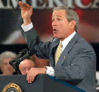 Ирак продолжает укрывать и поддерживать террористическую организацию, которая использовала насилие против Ирана, Израиля и западных правительств... Иракское правительство открыто восхваляло нападения 11 сентября. Известно, что террористы "Аль-Каиды", бежавшие из Афганистана, находятся в Ираке... В прошлом году Комиссия ООН по правам человека обнаружила, что Ирак продолжает совершать тяжелейшие нарушения прав человека...