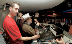 | Лидер "Исраэль ба-алия" Натан Щаранский (за пультом) быстрее других чувствует, кто сегодня заказывает музыку. Поняв по результатам выборов, что русский мотив выходит из моды, он сменил пластинку — вошел в блок с "Ликудом" и снова получил министерский портфель | ||