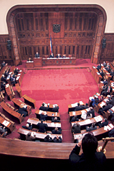 | Последняя сессия югославского парламента. 4 февраля 2003 года в 20 часов 10 минут объявлено о смерти Югославии и рождении нового государства — Сербии и Черногории | ||