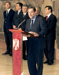 Депутаты управились даже раньше срока. Церемония прощания с Югославией была краткой. "Я провозглашаю вступление в силу конституции Сербии и Черногории",— торжественно произнес Мичунович и ударил молоточком в гонг. Собравшиеся поздравили друг друга с рождением нового государства, а значит, и с кончиной старого.