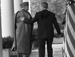 ФОТО: AP Хамид Карзай прежде не имел большого авторитета в Афганистане, но поддержка Джорджа Буша сделала его президентом. Сейчас равняться на Карзая пытается малоизвестный у себя на родине иракский оппозиционер Ахмад Чалаби |