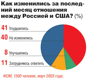 На 8,4% по сравнению с аналогичным периодом прошлого года, или до 640 млрд руб., вырос оборот розничной торговли в России в январе--феврале 2003 года. 75,7% оборота обеспечивают магазины, доля рынков — 24,3%. Доля продовольственных товаров в обороте — 46,2%, промышленных — 53,8%.