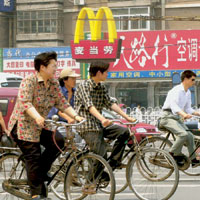 ФОТО: AP Китайцы еще предпочитают ездить на велосипедах, однако уже едят в McDonald`s и готовы судиться по любому поводу, как настоящие американцы |