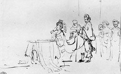 Рембрандт. Софонизба пьет яд из бокала. Эскиз композиции. Середина XVII века |