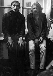 ФОТО: ВАЛЕРИЙ ПЛОТНИКОВ Первая фирменная климовская киноработа — «Агония». В ней режиссер (на фото вверху — Элем Климов и Алексей Петренко) обрел собственную режиссерскую оптику и опробовал парапсихологический метод работы с актерами (на фото внизу справа — Петренко в роли Распутина) |